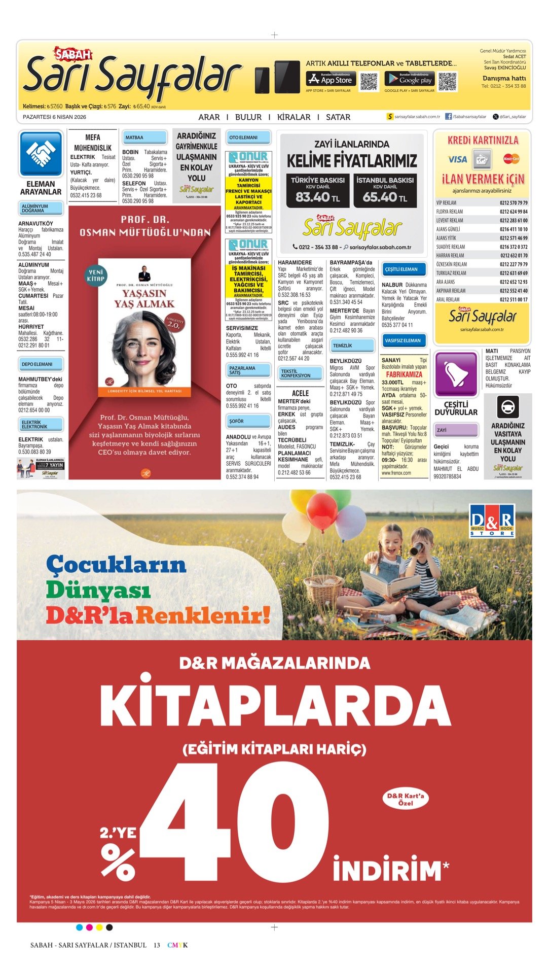 6.4.2026-Sabah Bugünkü İş İlanları, Sabah Eleman, Sabah Kayıp İlanı, Sabah Sarı Sayfalar.