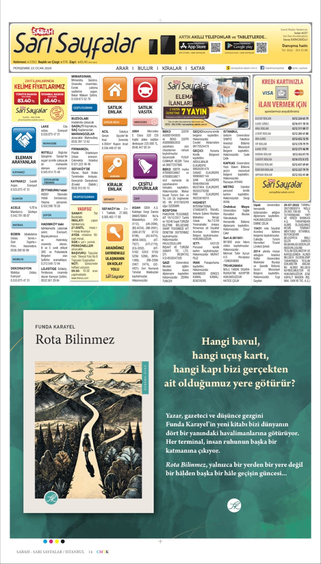 Kayıp kimlik, Ehliyet, Öğrenci kimliği, Diploma kayıp ilanı, Ruhsat kayıp ilanı, Geçici vatandaşlık kimlik belgesi kayıp ilanı, Resmi evrak kayıp ilanı, farklı konulardaki kayıp ilanlarınızı Sabah Sarı sayfalar sayfalarında en uyguna yayınlatabilirsiniz.