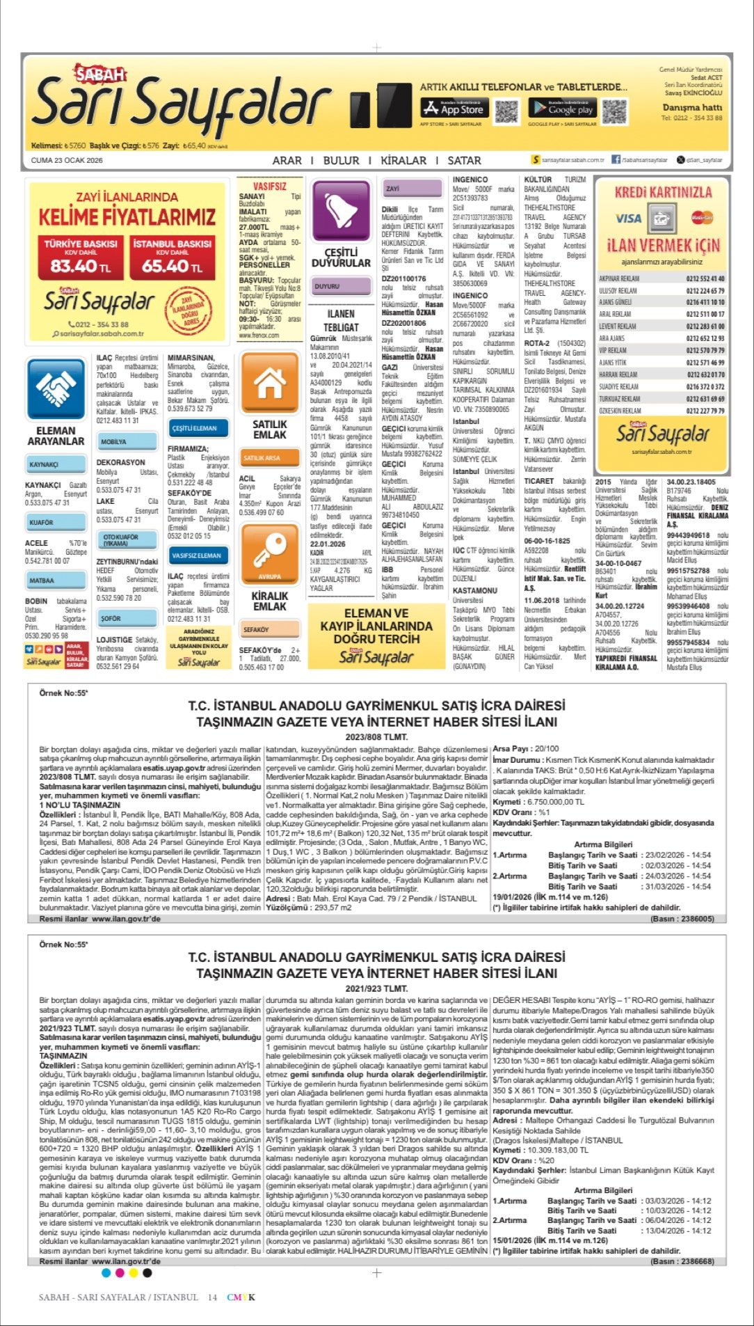 Sabah ilan reklam servisi web sitemizde, kayıp ilanları ve eleman arama ilanlarınızı hızlı ve güvenilir şekilde yayınlayabilirsiniz. Gazete ilanı gücüyle geniş kitlelere ulaşın.