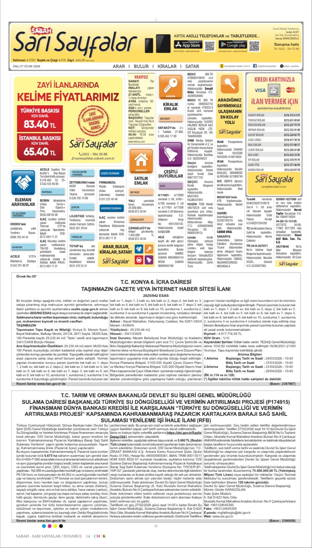 Sabah Bugünkü İş İlanları, Sabah Eleman, Sabah Kayıp İlanı-27.1.2026