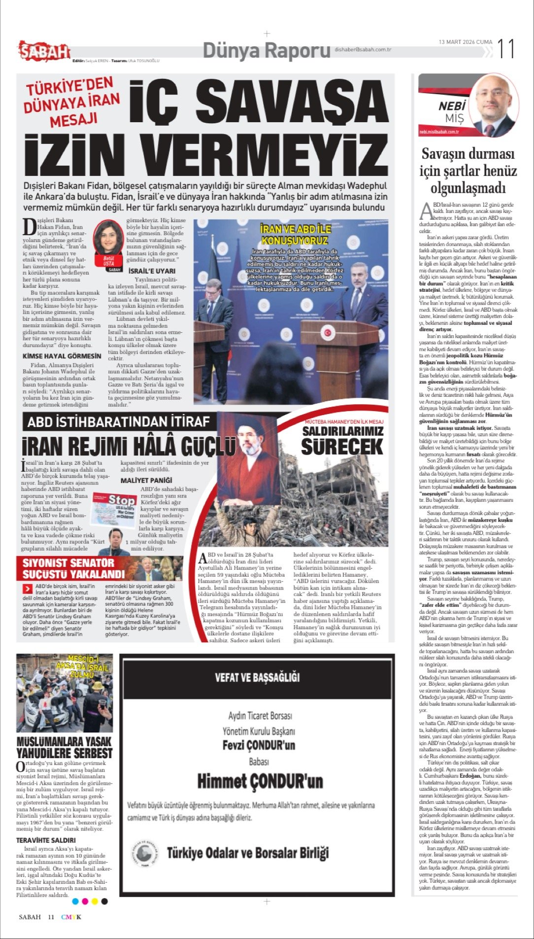 Sabah Bugünkü İş İlanları, Sabah Eleman, Sabah Kayıp İlanı, Sabah Sarı Sayfalar-13.3.2026