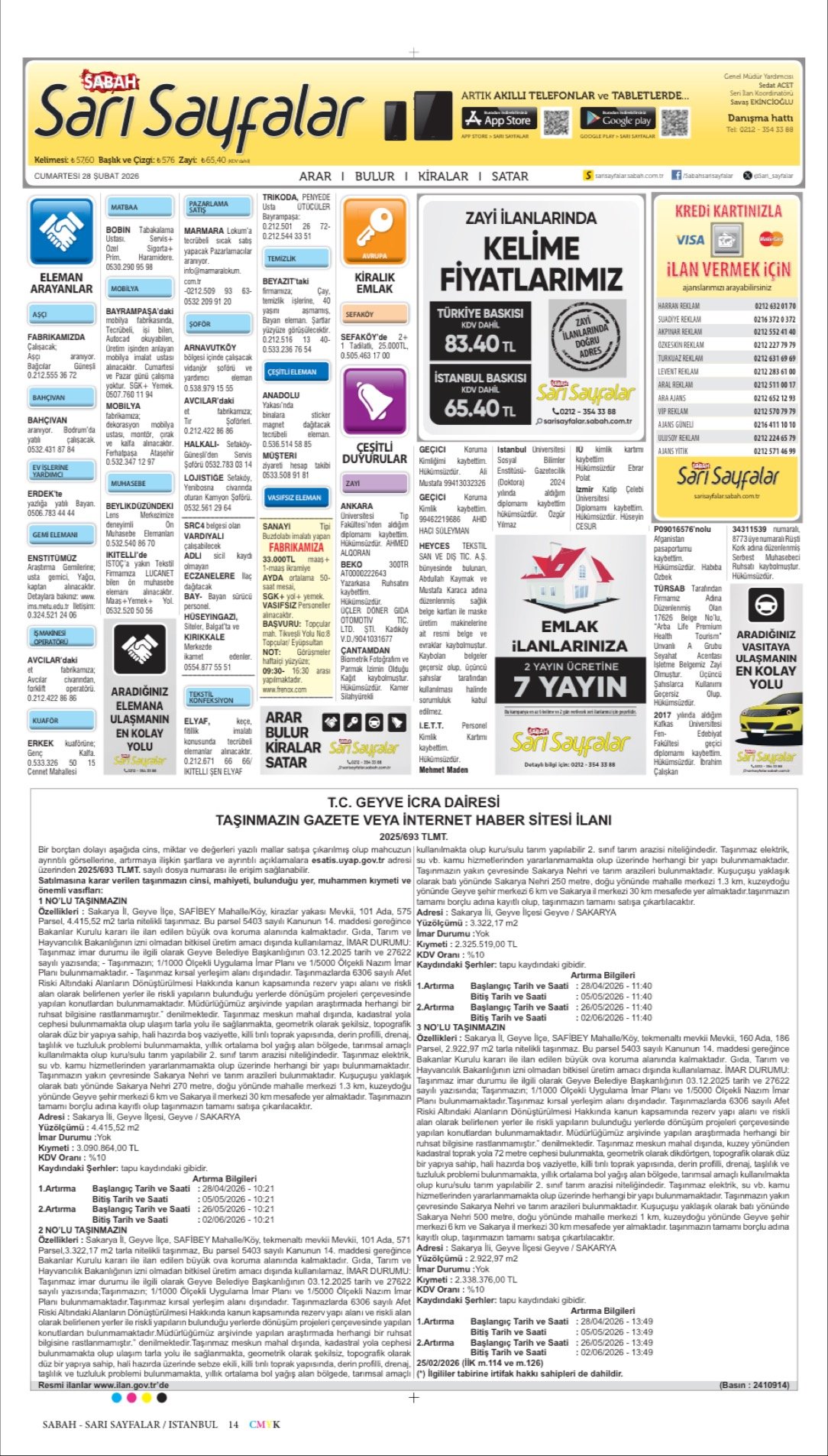 Sabah Bugünkü İş İlanları, Sabah Eleman, Sabah Kayıp İlanı, Sabah Sarı Sayfalar-28.2.2026
