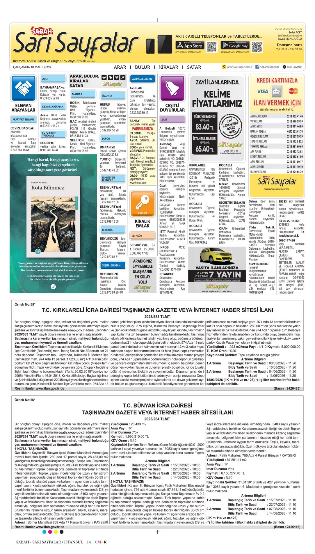 Sabah ilan reklam servisi web sitemizde, kayıp Read more