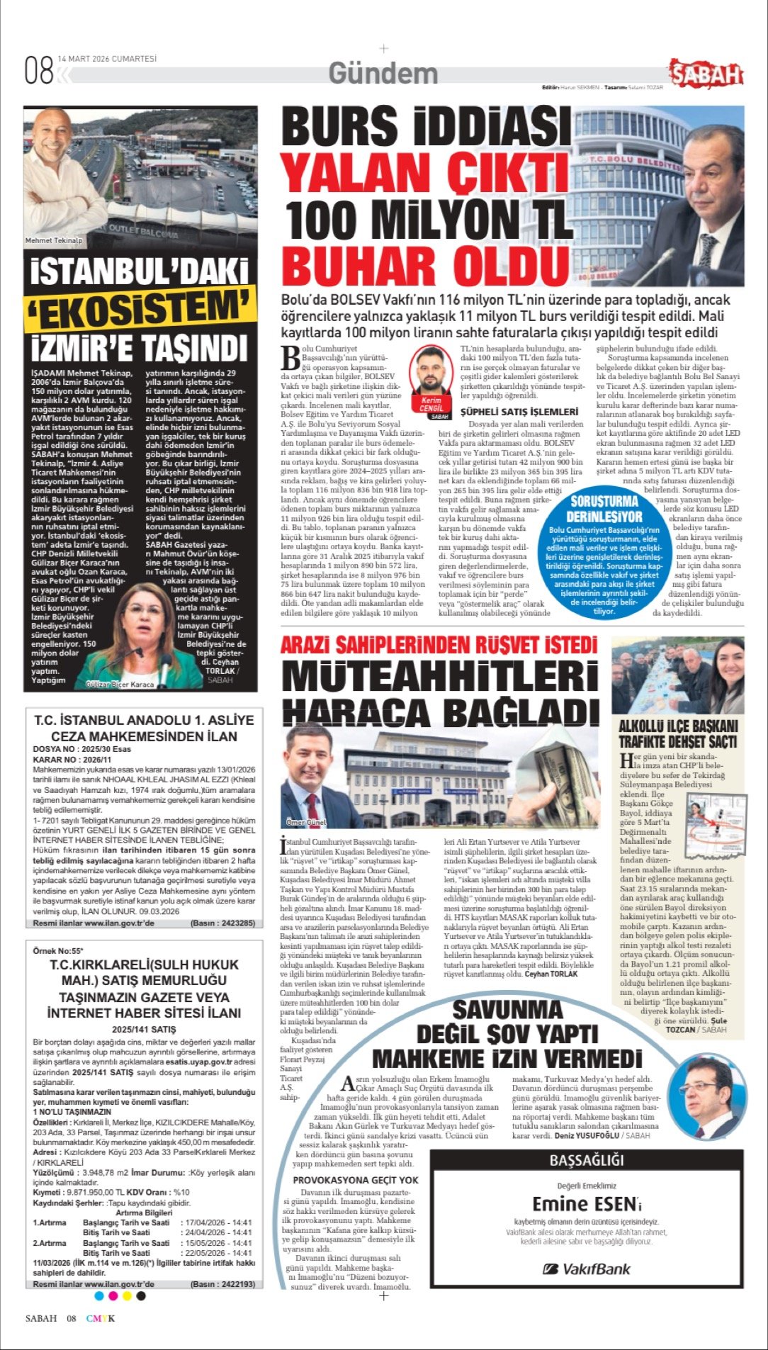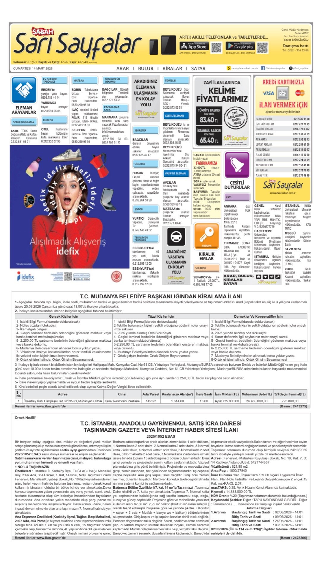 Sabah ilan reklam servisi web sitemizde, kayıp ilanları ve eleman arama ilanlarınızı hızlı ve güvenilir şekilde yayınlayabilirsiniz. Gazete ilanı gücüyle geniş kitlelere ulaşın.