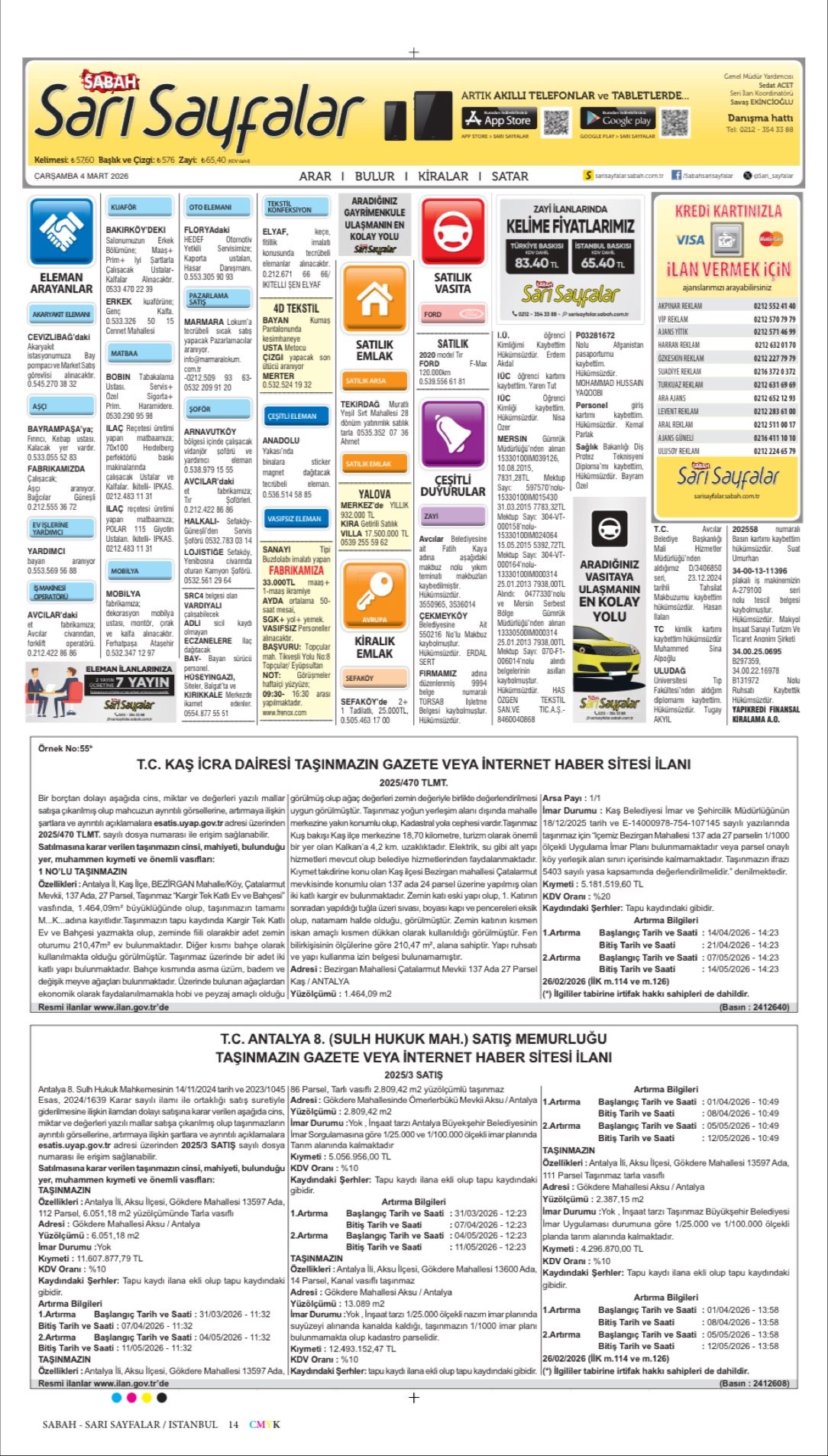 Sabah ilan reklam servisi web sitemizde, kayıp Read more
